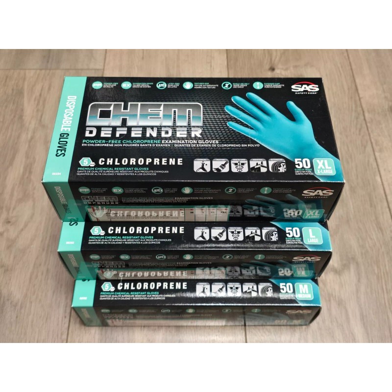 SAS Chem-Defender Chemical Resistant Disposable Extended Cuff Gloves 50pk Medium