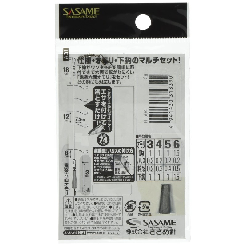 Sasame N-504 Wakasagi Gimmer, Multi-Set, 6 Hooks, 0.1 oz (3 g), No. 1.0 - 0.2