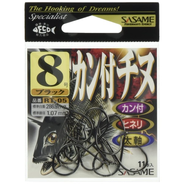 SASAME RT-05 Chinu Black Hook with Can, No. 8 Fish Hook