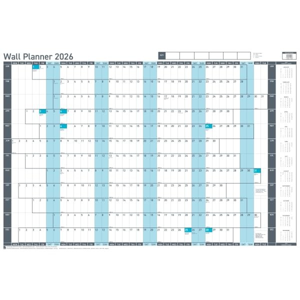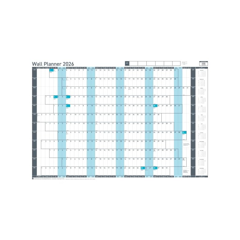 Sasco is the UK's number one brand in wall planners, with over 50 years of expertise. The Sasco Value Year Wall Planner shows all your planned events and activities at a glance, ideal for use in the office or at home. The landscape grid provides generous sized boxes in which to write, with days running horizontally across the top and months listed vertically down the side. All UK & ROI bank holidays are clearly marked and weekends are shaded for easy reference. Also contains a quick reference calendar for the following year so you can plan even further ahead. This planner is mounted on durable card and laminated, so you can 'wipe and rewrite' if plans change. Comes with mounting pads for easy wall mounting. Board Mounted, 915mmW x 610mmH.See all your events and activities from January to December, at a glance, with all UK & ROI bank holidays clearly marked. This essential, Value Year Planner Wall from Sasco is ideal for use in the office or at homeLandscape grid with days running horizontally across the top and months down the sidePrinted on high quality 130gsm paper and laminated so it's easy to wipe and rewrite as plans changeContents: 1 x Sasco 2026 Value Year Wall Planner, Mounting padsDelivered folded.