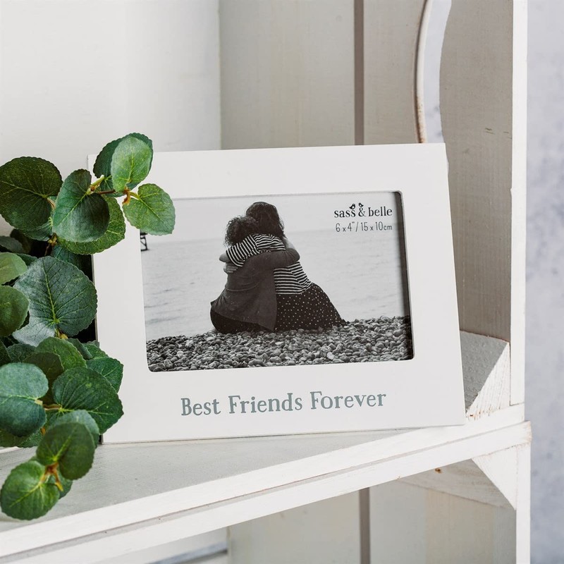 This simple white frame at a brilliant price, is an ideal gift. It is made out of wood and features a grey message which reads 'Best friends forever'. A popular and sentimental message in line with the trend for products with sayings.