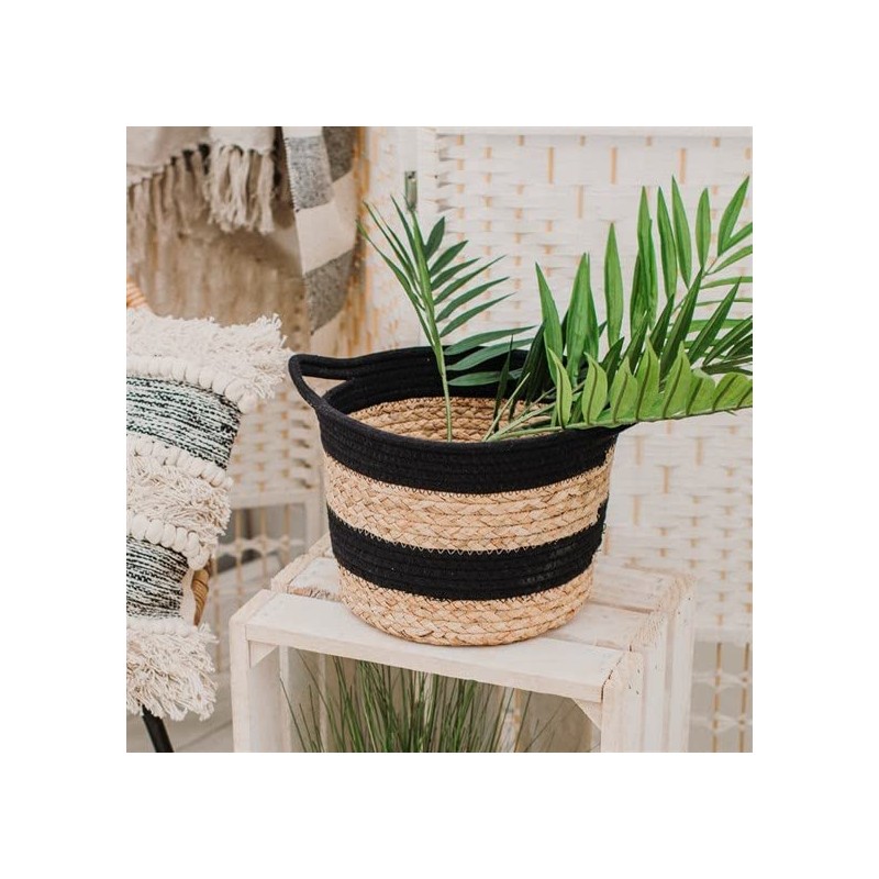 Embrace the boho life and upgrade your home storage with this simplistic, but still rather pretty, basket. Made from gorgeous natural seagrass and finished with black cotton rope to create a gorgeous stripe pattern. A wonderful addition for chic homes looking for a little Scandi spirit.