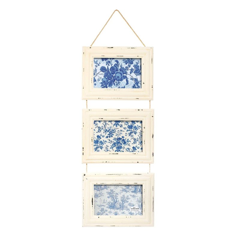 - Whether it's a wedding or a birthday, capture memories of the happy times in this shabby chic three landscape aperture photo frame. With a colourway of soft white, you surround the vintage colour wash and natural texture of the cord.