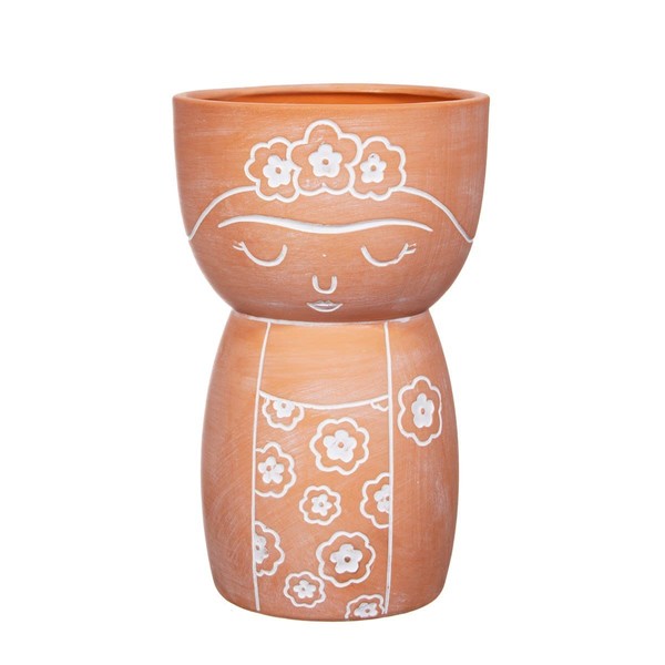 - Let your flowers thrive in this beautiful Bohemian vase. Wonderful for those inspired by the rich culture and art of Mexico. With the minimal eye expression on a warm terracotta base, this home accessory is a fabulous conversation starter.