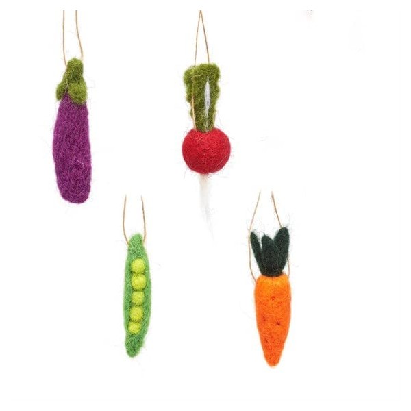Nothing says Christmas like a serving of delicious roasted veggies! Grab your five-a-day with this set of four felt decorations. Shaped as our favourite Christmas vegetables, you'll find a carrot, beetroot, aubergine and peas in a pod.