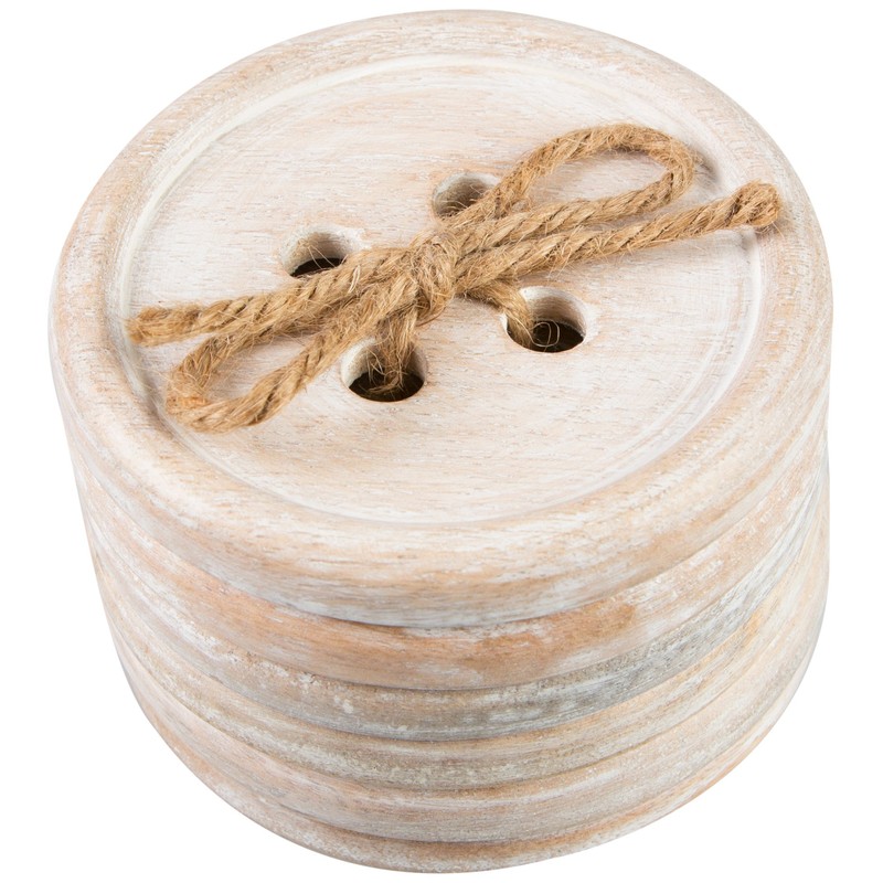 - The button wood coaster comes in a set of 6 pieces