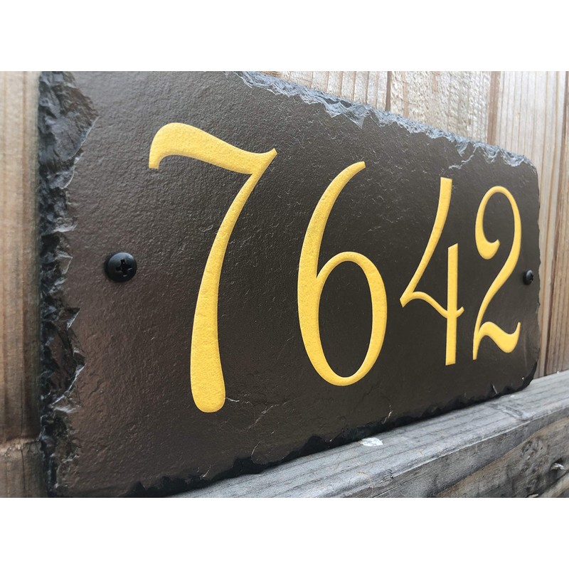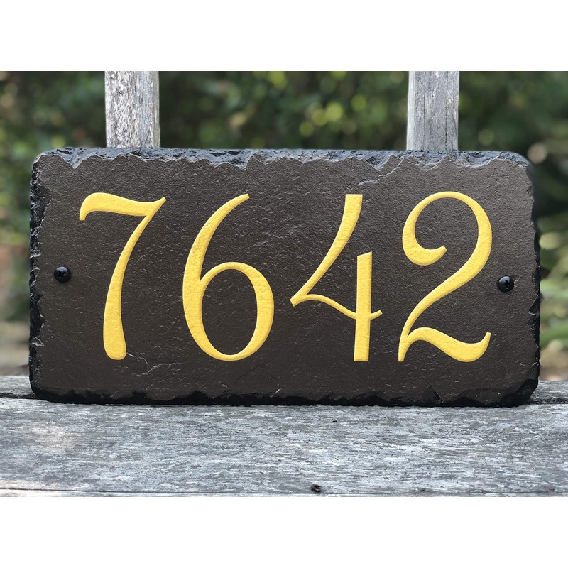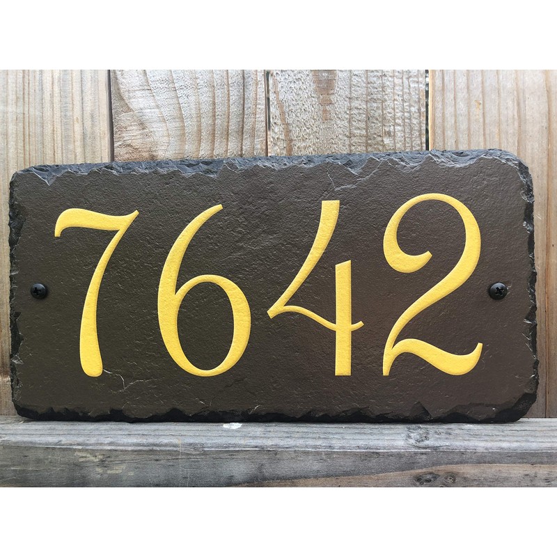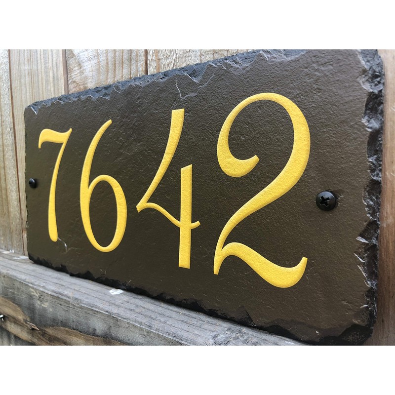 Sassy Squirrel Beautifully Handcrafted and Customizable Slate Home Address Plaque (12"x6" or 18"x8") Improve the curb appeal of your property with this bespoke house sign.