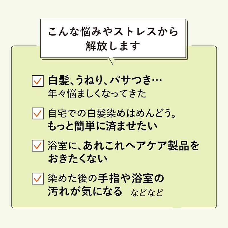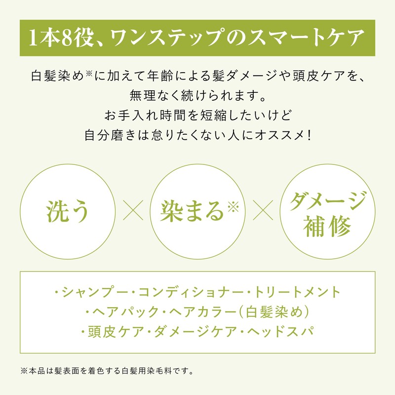 - A premium time-saving item developed by a long-established gray hair dye, dyeing, washing, scalp care, and aging care