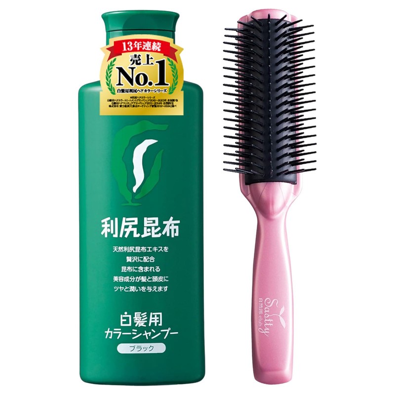 Sastty Rishiri Color Shampoo (Black) 6.8 fl oz (200 ml) + Mineral Ion Brush