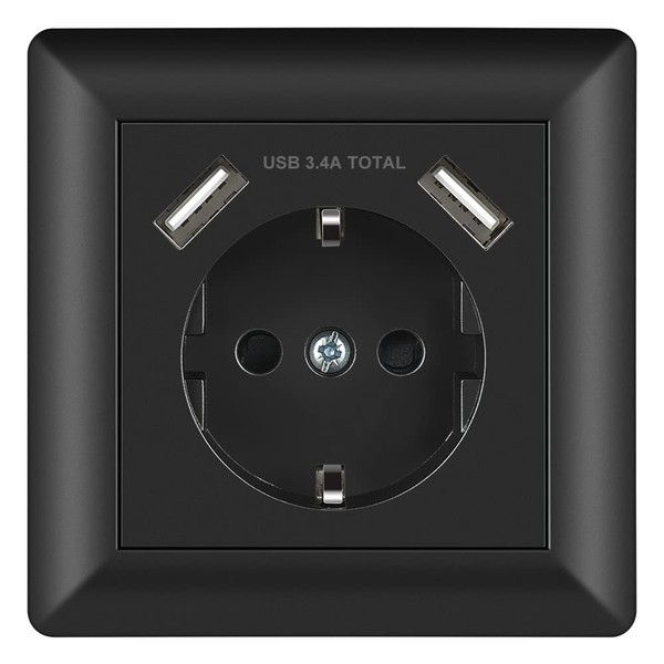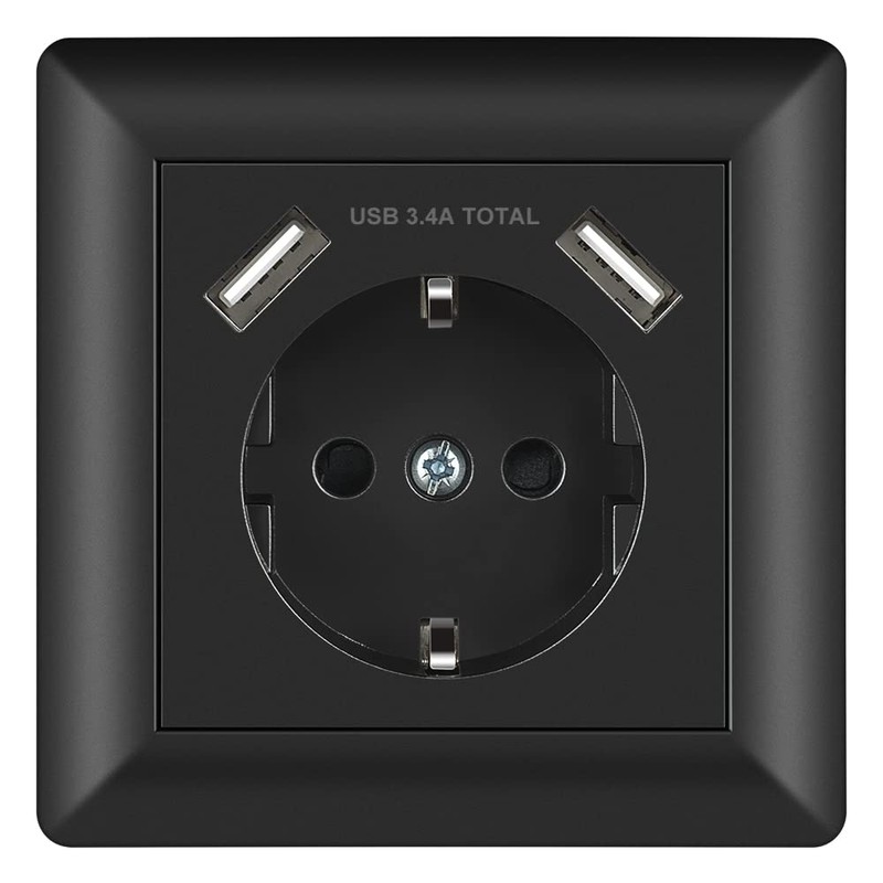 • High safety: the outer housing of the black socket is made of fireproof plastic. The USB flush-mounted sockets are secured by electronic short circuit protection and overload protection (USB)