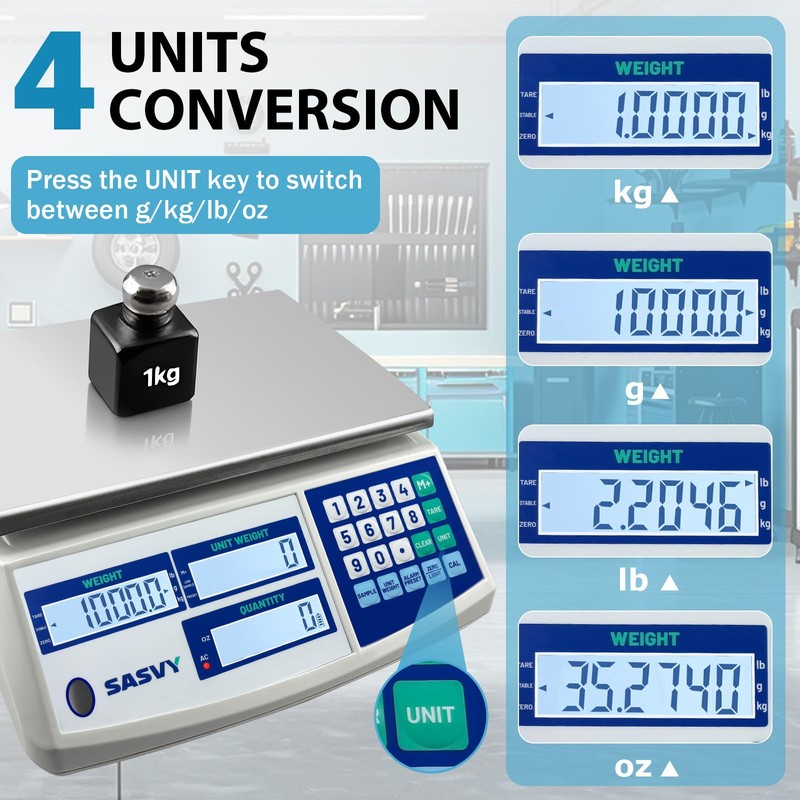 SASVY Counting Scale (66lb/30kg, 0.1g) lb/oz/kg/g Industrial Digital Inventor...