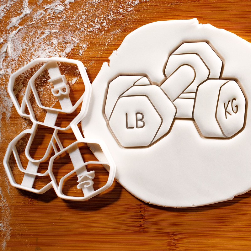 - Dumbbell cookie cutter size: 11.0 cm by 8.1 cm (4.3 inches by 3.1 inches)