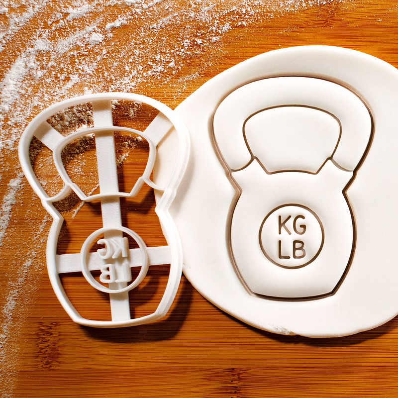 - Kettlebell cookie cutter size: 7.5 cm by 10.3 cm (2.9 inches by 4.0 inches)