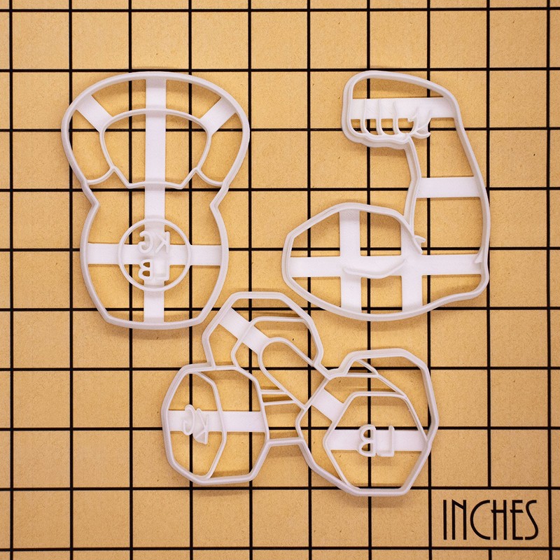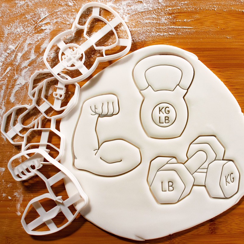 Sat of 3 Weightlifting Cookie Cutters (Kettlebell, Dumbbell, Bent Biceps), 3 Pieces