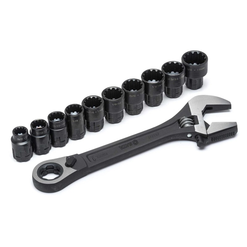 SATA 11 Piece X6 Pass-Thru Adjustable Wrench Set - Black Edition