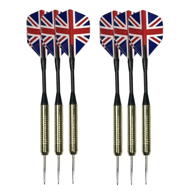 - COMPLETE SET: Professional 6-pack steel tip darts set perfect for beginners, featuring Union Jack design flights and standard stems