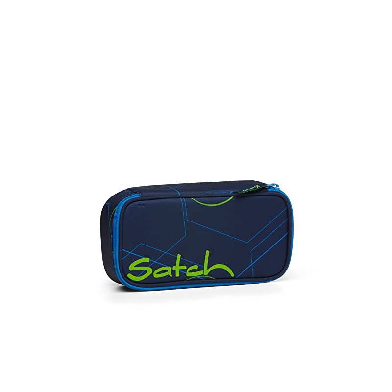 satch Extra Large Pencil Case including Divider Compartment, Zip-Up Pocket, Pen Holder Set, Square Viewing Window for Timetable, Blue Tech - Dark Blue