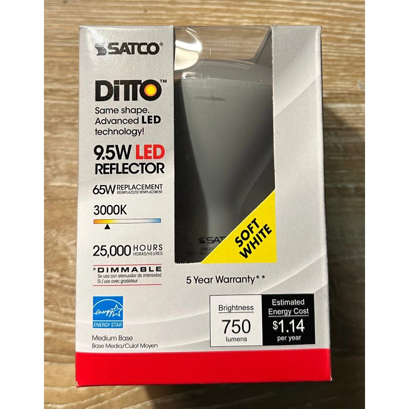 Satco 9.5W LED Reflector BR30 Bulb, Dimmable, 3000K: