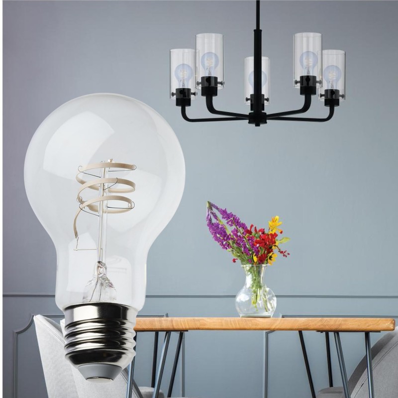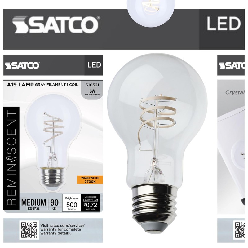 - Classic A19 LED design with a clear glass housing and flex gray coil filament for a vintage-inspired look that complements modern efficiency. Consumes just 6 watts while replacing a traditional 40 watt bulb, providing the same inviting atmosphere with far less energy use. Ideal for decorative fixtures where style matters as much as light quality, delivering character without sacrificing performance or cost savings.