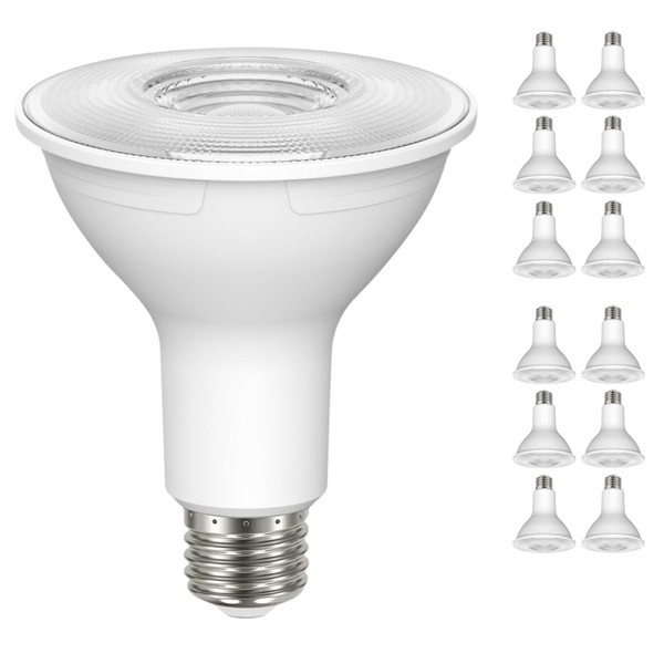 Satco LED PAR30L Lamp 8.5W 75W Equivalent 4000K Cool White 90+ CRI 40° Beam Angle Dimmable Medium Base 120V Clear Finish – Part S22215 (12 Pack)