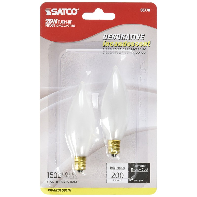 Satco Products S3778 120-Volt 25CA8 Candelabra Base Turn Tip Frosted Light Bulb