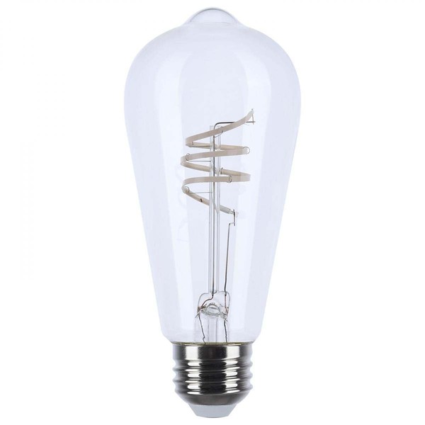 Satco S11520 LED Bulb, ST19, 6W (40W Eq), 2700K Warm White, Flex Gray Coil Filament, Medium Base E26, Dimmable, 500 Lumens, Clear Glass, Vintage Style, 120V, Enclosed Fixture Rated