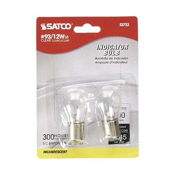 Satco S3723 12V SC Bayonet Base 12-Watt S8 Light Bulb, Clear