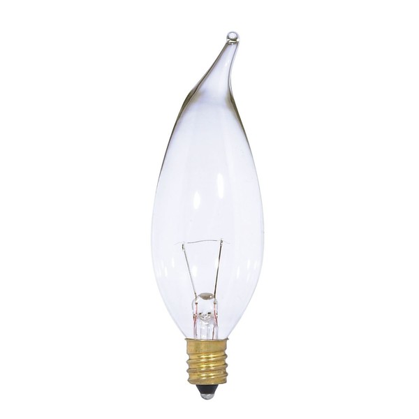 Satco S3867 12V Turn Tip Candelabra Base 15-Watt CA10 Light Bulb, Clear