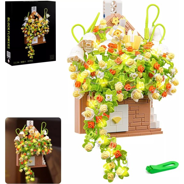 Sathibi Flower Bouquet Building Set with LED Light/Home & Wall Decor/ 577pcs