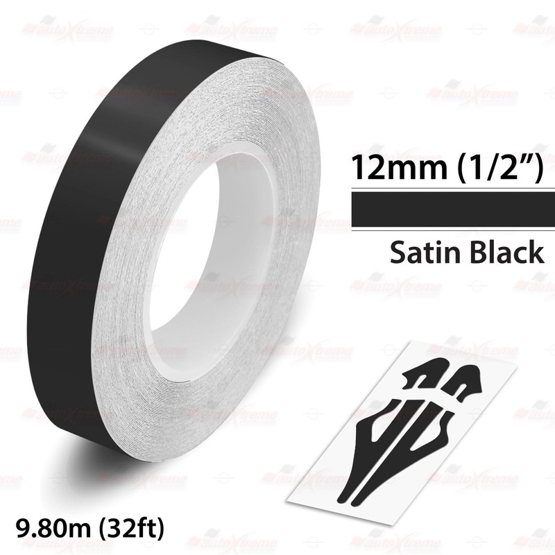 SATIN BLACK, 1/2" | 12mm, Self-Adhesive Vinyl Pin Stripe Line Decal Sticker Tape, Length 32ft | 9.80m, Suitable for Cars, Vans, Motorcycles, Bikes, Models, Tuning & Styling, and much more
