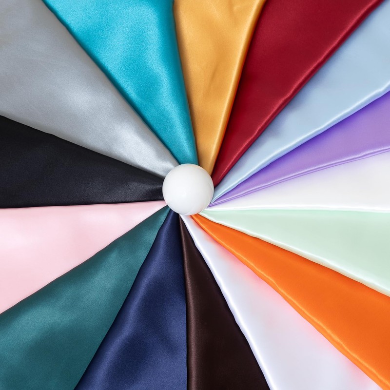 - [ WIDE USE SCENARIOS ] Unleash your creativity with our classic-looking satin fabrics.You can use it to make table decorations such as satin table runners, satin napkins, satin tablecloths, satin chair sashes. It can also be used to make satin bonnet, satin scrunchies, satin head scarf, satin tie, wedding dress, gowns, costumes.