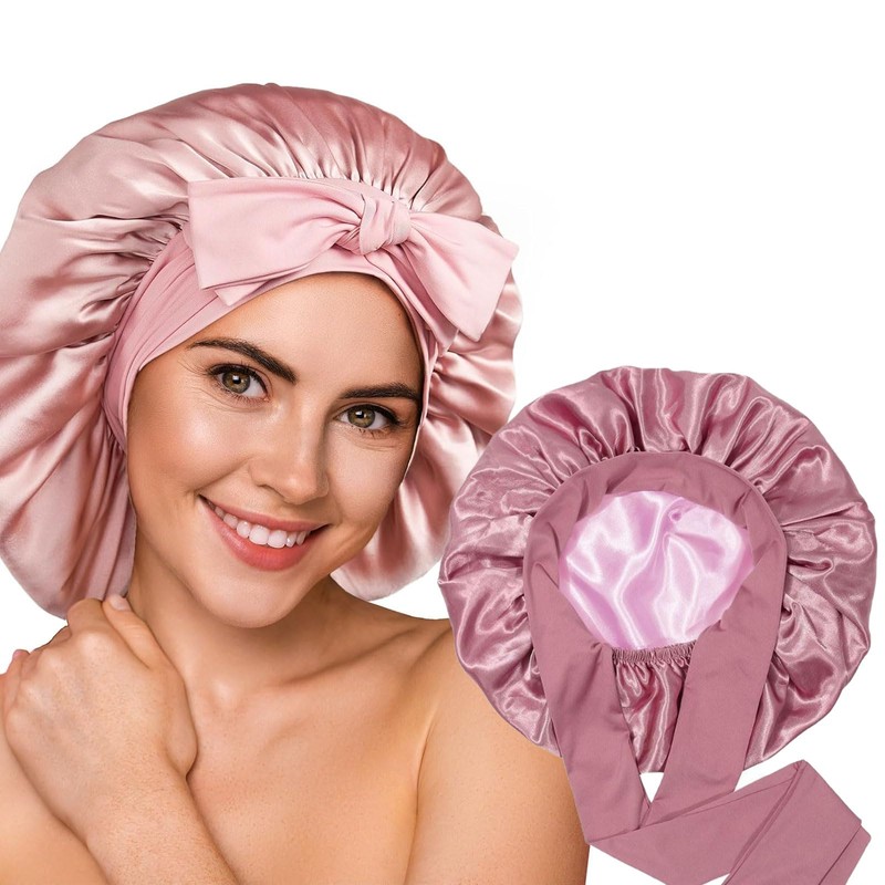 - DOUBLE LAYER SILK HAT Double layer two color silk hat, both layers are smooth. The satin structure is equipped with two soft and elastic bands that can be wrapped around the head to avoid tangles and protect the hair.
