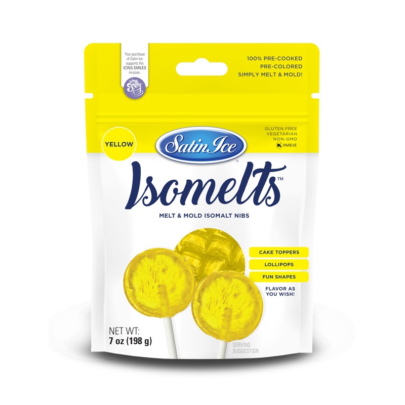 Satin Ice Isomelts, Yellow, 7 Ounce Pouch - Melt and Mold Isomalt Nibs