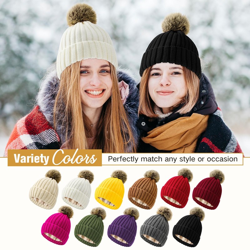 - Silk Satin Lining: satin lined beanie is easy to put on and take off, this cute beanie won't mess up your hairstyle; silk lined beanie helps retain moisture in your hair, keeping it hydrated and preventing frizz