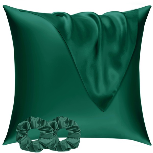 Satin Pillowcase 80 x 80 cm, Set of 2 & 2 Hair Elastics, Satin Pillowcase 80 x 80 cm, Dark Green, Soft as Silk Pillowcase 80 x 80 cm, Better Care Than Silk Pillose Case, Cushion Cover for Hair and