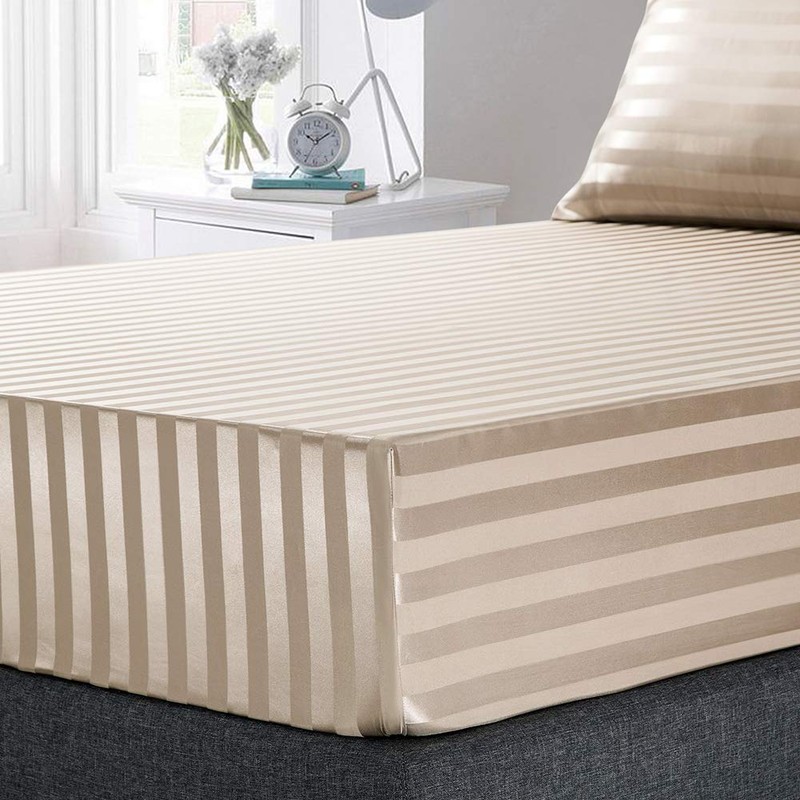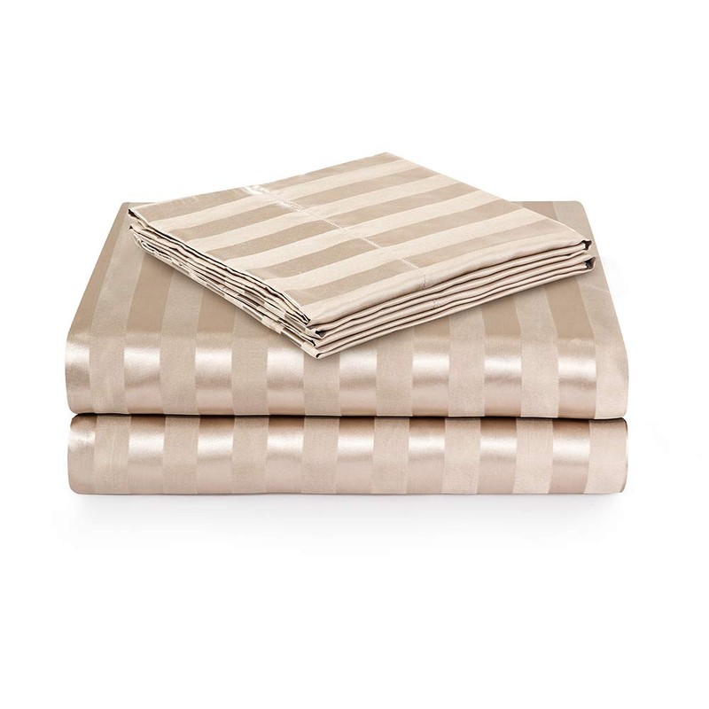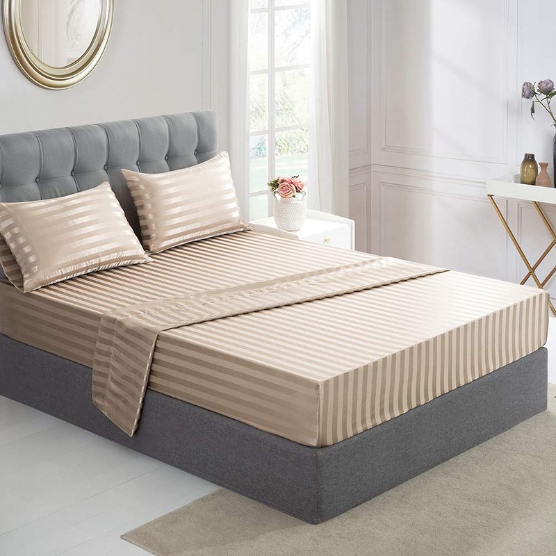 Satin-Silk Sheets Queen Size Bed Set, Taupe Soft Cooling Deep Pocket Queen Sheets, Hypoallergenic, Wrinkle and Fade Resistant Bedding Set, Striped