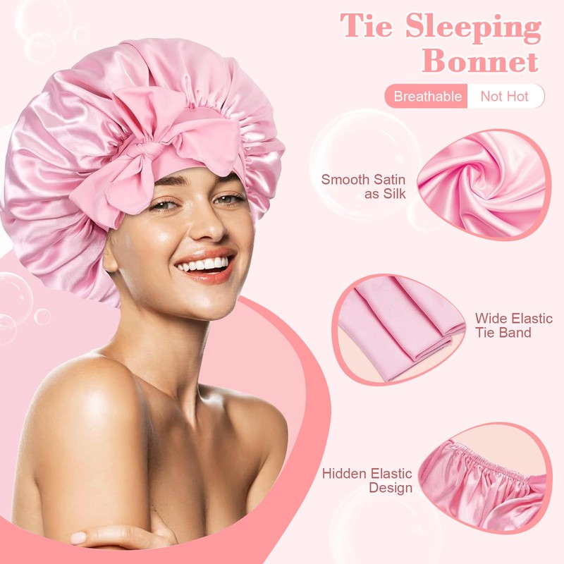 - Wearing a satin bonnet when sleeping, not only can prevent frizz and tangles, reduce breakage and fall off but also can keep the moisture and luster of the curly or wavy hair, so that combing the hair becomes easy