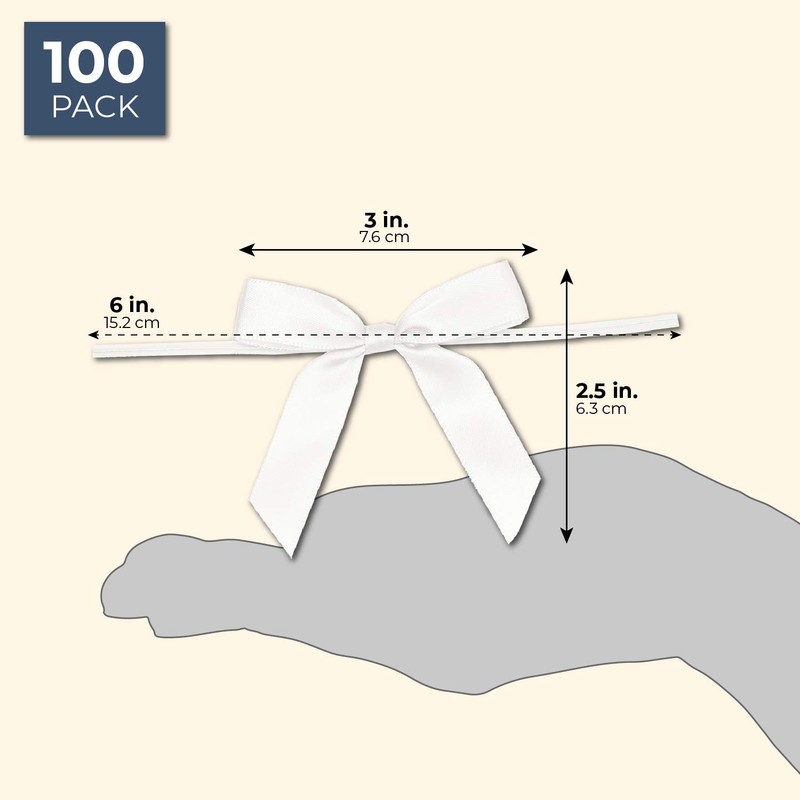 Satin Twist Tie Bows (White, 2.5 x 3 in 100-Pack)