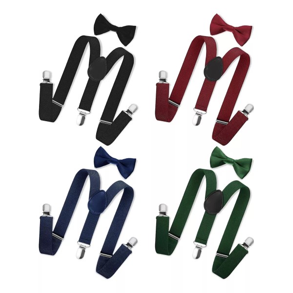 Recibirás 4 juegos de corbatines con tirantes para niños en diferentes colores, varios colores para que elijas, múltiples cantidades y diferentes colores ofrecen más opciones para las demandas diarias de los niños y satisfacen las necesidades diarias de cambio y uso diario de los niños