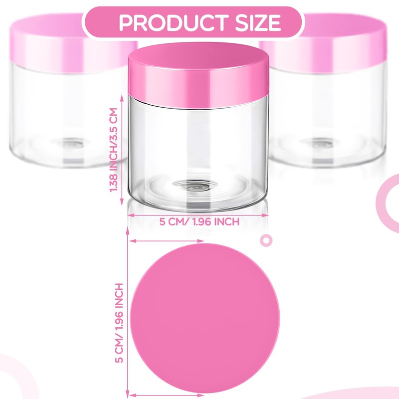 - Package Includes: 100 pieces of 2 oz plastic containers with lids, each small plastic jar is about 1.97 inches/ 5 cm in diameter, about 1.89 inches/ 4.8 cm tall, and holds 2 oz, each small plastic jar weighs only 15 grams; The large quantity is convenient for your multiple purposes, suitable for packing and carrying cosmetics at home or travel