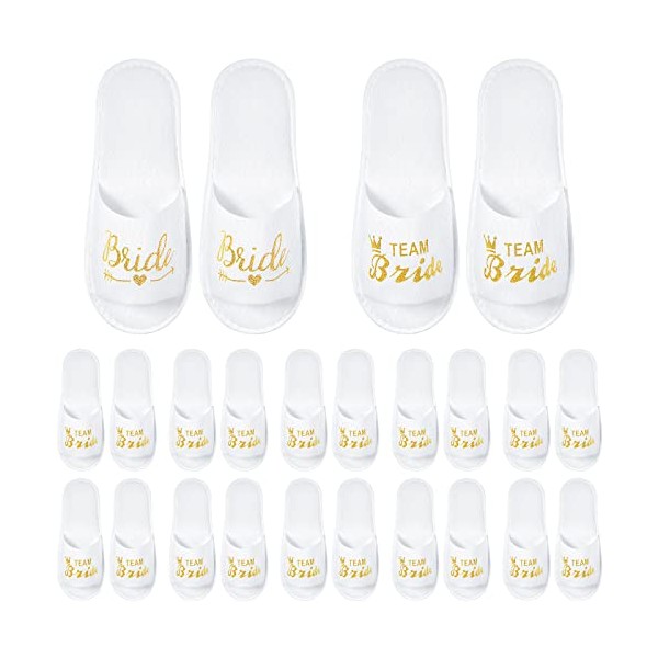 Satinior 12 Pairs Disposable Open Toe Spa Slippers for the Bride Team Bride Spa Slipper Bridesmaid Slippers for Wedding Bridal Party (Gold, Gold)