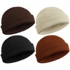 SATINIOR 4 Pieces Trawler Beanie Watch Hat Roll up Edge Skullcap Fisherman Beanie Unisex (Black, Coffee, Dark Caramel, Beige)