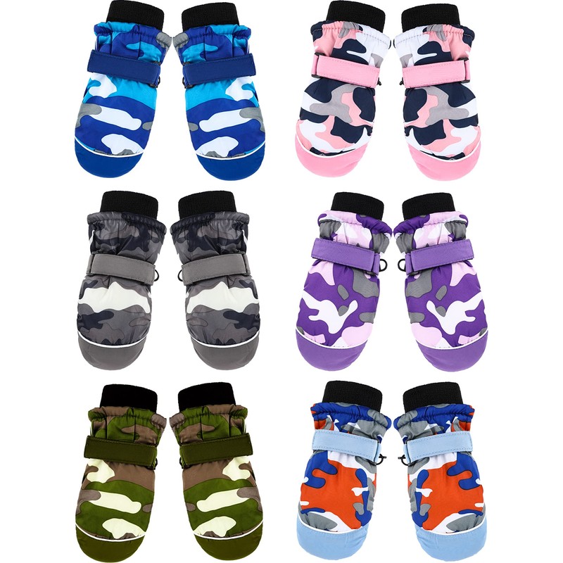 SATINIOR 6 Pair Kids Winter Snow Mittens Waterproof Toddler Ski Gloves for Children Outddor Activities(Camouflage Style,5-10 Years)