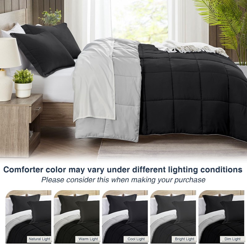 - 【Soft & Breathable】Packed with premium whole-piece microfiber, this black and grey comforter offers a remarkably soft, cozy, and warm touch that's perfect any time of the year. The material's breathability guarantees a dreamy sleep, while the 100% brushed microfiber construction feels like snuggling up on a cloud, ensuring nightly comfort no matter the season.