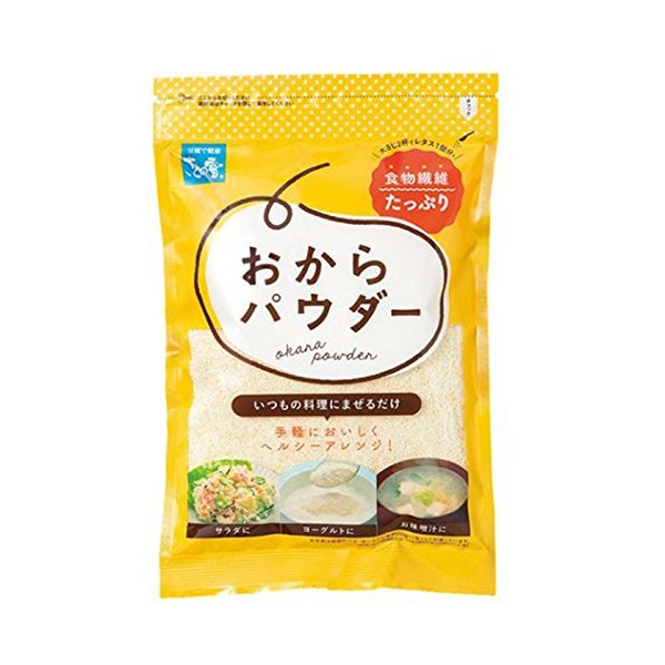 Okara contains a large amount of soybean nutrition such as fiber, soybean protein and isoflavones.By drying okara and undergoing powder processing, it has a longer shelf life and can be easily incorporated into your meals.
