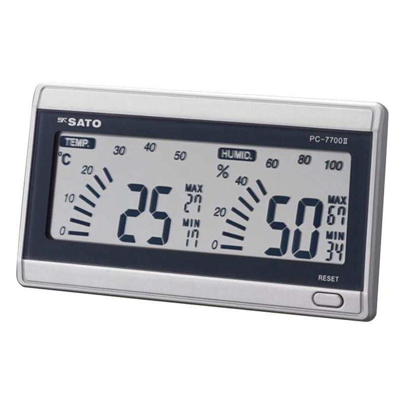 Sato PC-7700II Thermometer/Hygrometer, Digital, Maximum and Minimum Temperature and Humidity Recording, Desktop and Wall Mountable, Room Navigation System