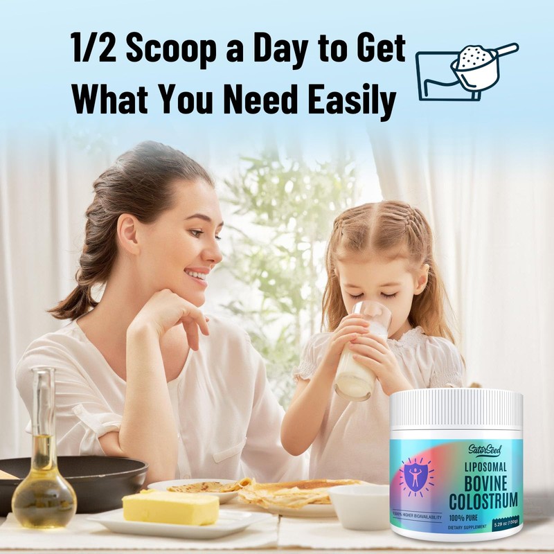 SatorSeed Liposomal Bovine Colostrum Powder Supplement 100% Pure Colostrum, 1500% Higher Bioavailability for Immune and Gut Health (60 Servings)