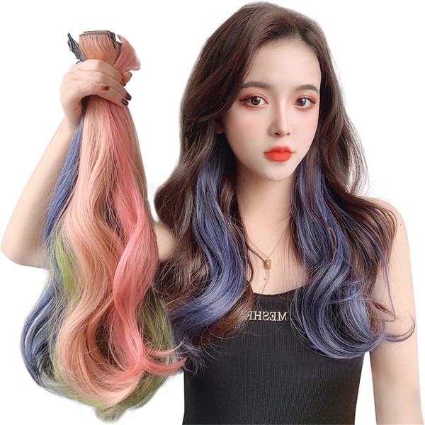 SATPULOT ワンタッチエクステ巻き髪 カラフルエクステ ロング ウィッグ カール グラデカラー ヘアアレンジ ヘアアクセサリー 付け毛 レディース エクステンション カラフルエクステ ウィッグ ワンタッチ クリップ つけ毛 簡単取付 コスプレ耐熱 パーティー ファッション(グレープフルーツピンク)100%耐熱ファイバー 長さ位:約55cm、幅は約3cm