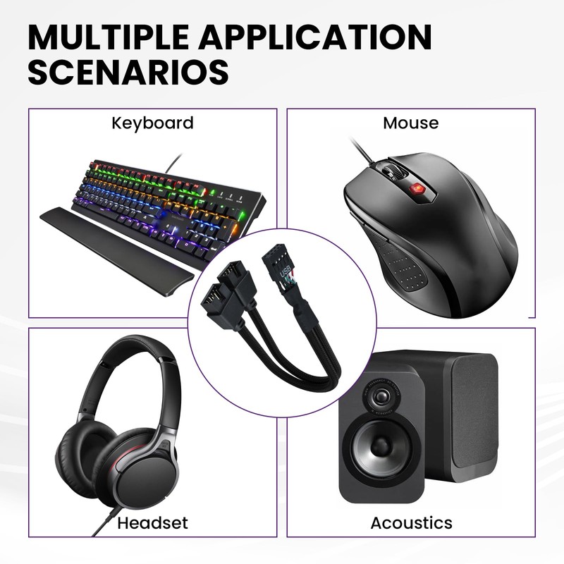 - πππ π.π π-ππ’π§ ππππππ« ππ©π₯π’ππππ«: The USB 2.0 header splitter is designed to solve the issue of insufficient USB ports. It converts a single USB 2.0 9-pin header on the motherboard into two separate 9-pin ports