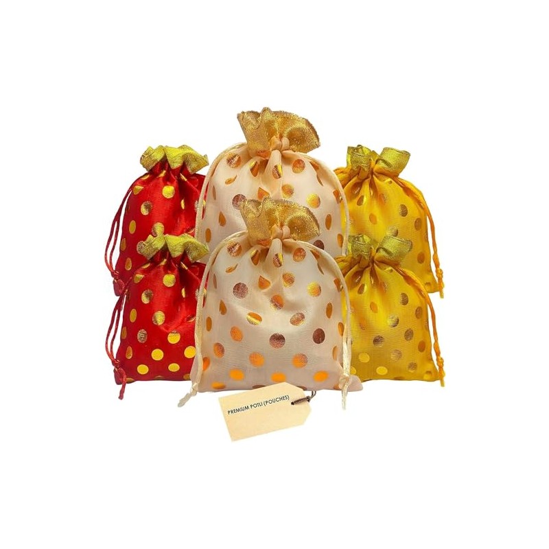 - Convenient Size: Each potli measures 9 inches, ideal for storing small items like jewelry, gifts, or party favors.